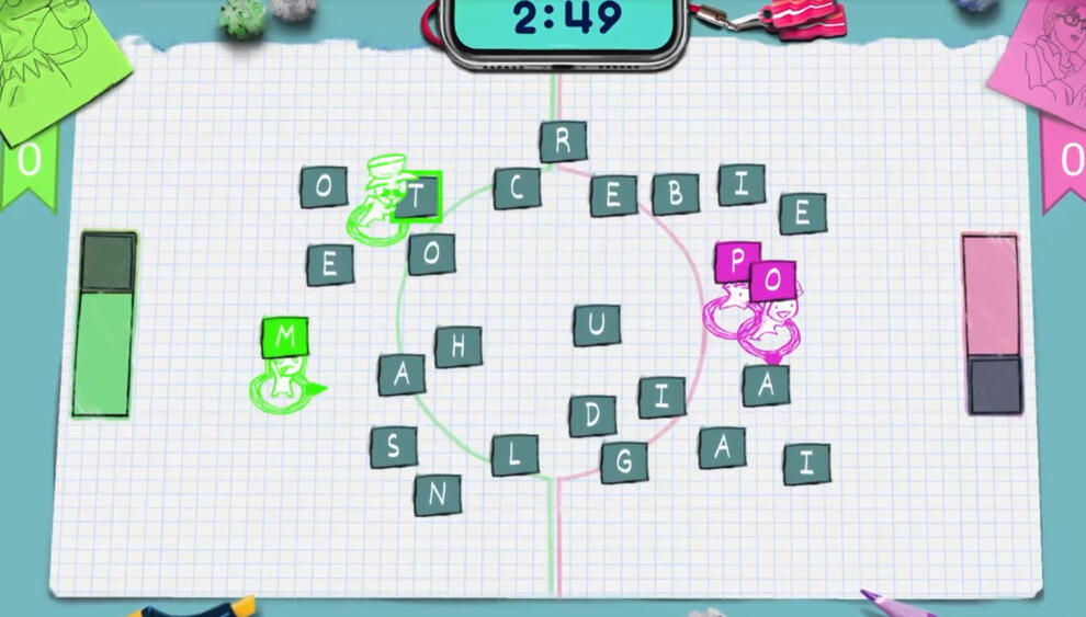 WordWar is a couch multiplayer game from 1 to 4 players.Its particular aspect is that it combines word game goals with chaotic couch game dynamics.In fact, the players have to fight for the letters scattered in the Arena in order to build words and score points
